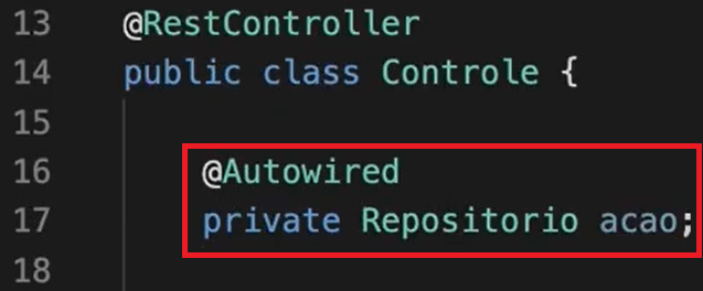 Para implementar o @Autowired em nosso projeto, abra o arquivo de controle e antes das rotas implemente o seguinte código: