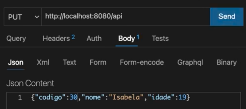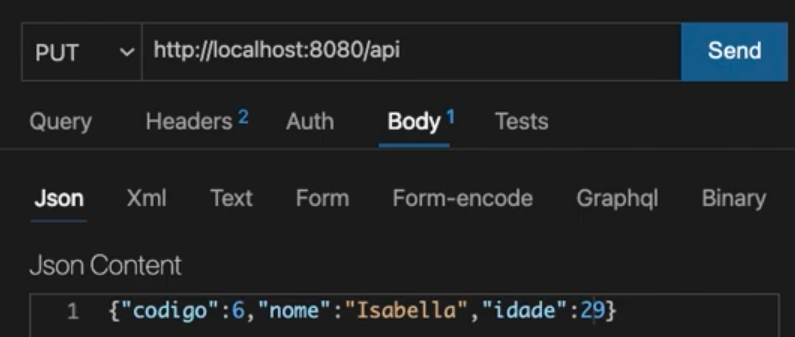 Vamos testar nossa rota de alteração? Abra o Thunder Client e faça a seguinte requisição: