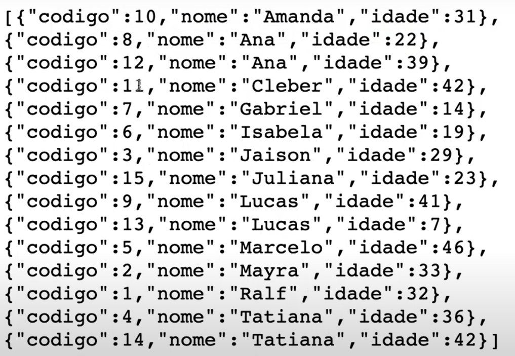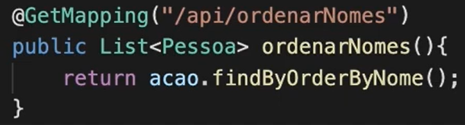 Podemos testar, abra o navegador e acesse o link: localhost:8080/api/ordenarNomes, o resultado será esse: