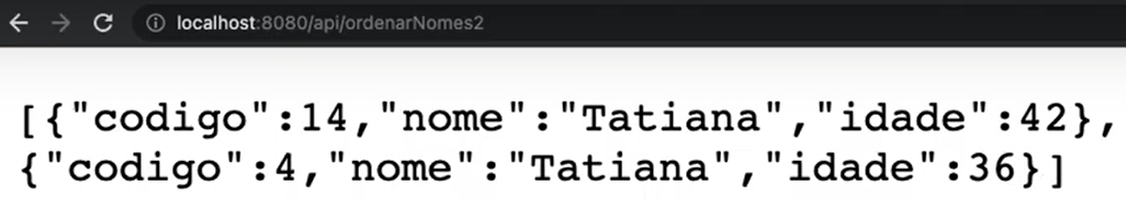 Agpra é só testar, abra o navegador e acesse o link: localhost:8080/api/ordenarNomes2, o resultado será esse: