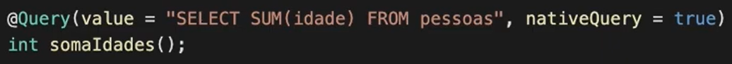 Criamos um comando SQL responsável por somar as idades, agora podemos abrir o arquivo de controle e implementar a seguinte rota: