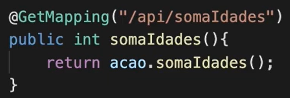 Podemos testar, abra o navegador e acesse o link: localhost:8080/api/somaIdades, o resultado será esse: