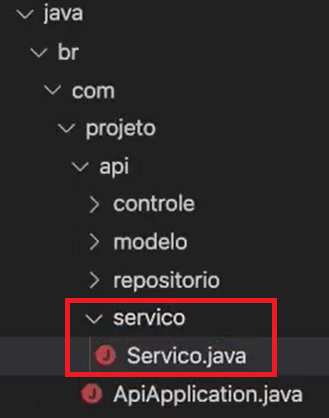 Inicialmente podemos criar uma pasta chamada servico e dentro dela um arquivo chamado Servico.java: