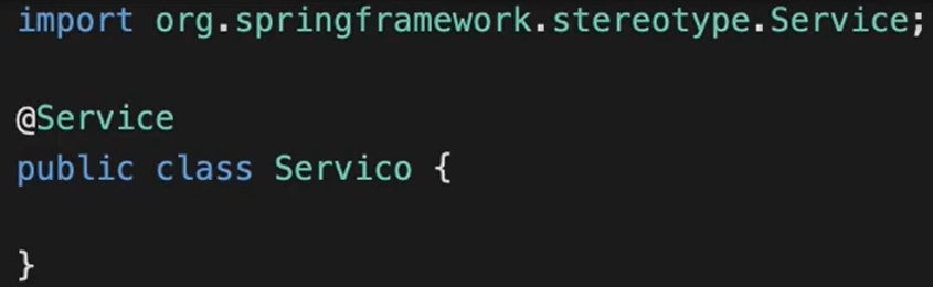 Agora podemos implementar a annotation @Service na classe, não esqueça de realizar a importação da annotation:
