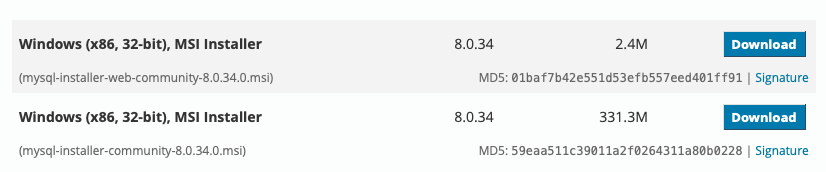1º Acesse o link para download do MySQL (está na parte de softwares utilizados) e baixe a primeira opção de 2.4mb: