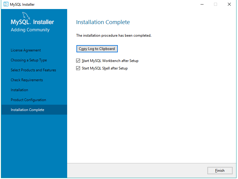 15º Clique em Finish e pronto! MySQL Instalado com sucesso!