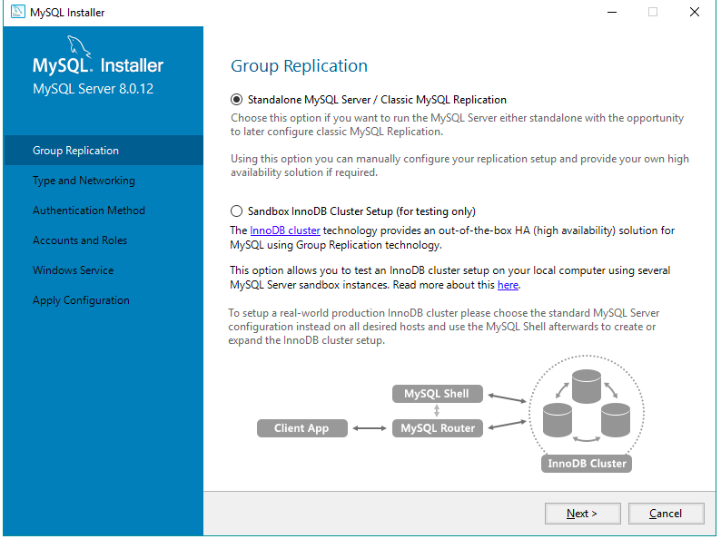 8º Deixe a primeira opção ativa: Standalone MySQL Server e clique em Next >: